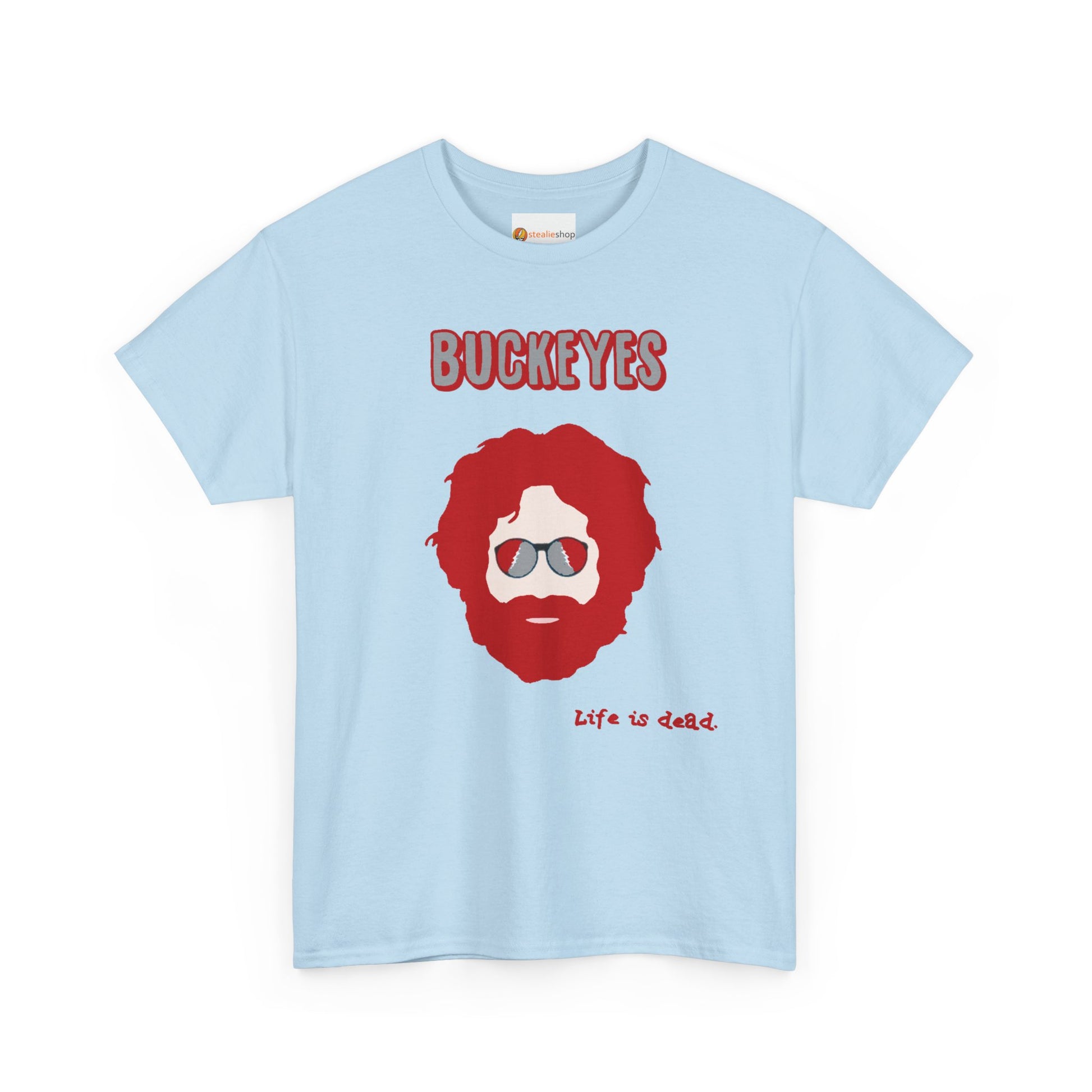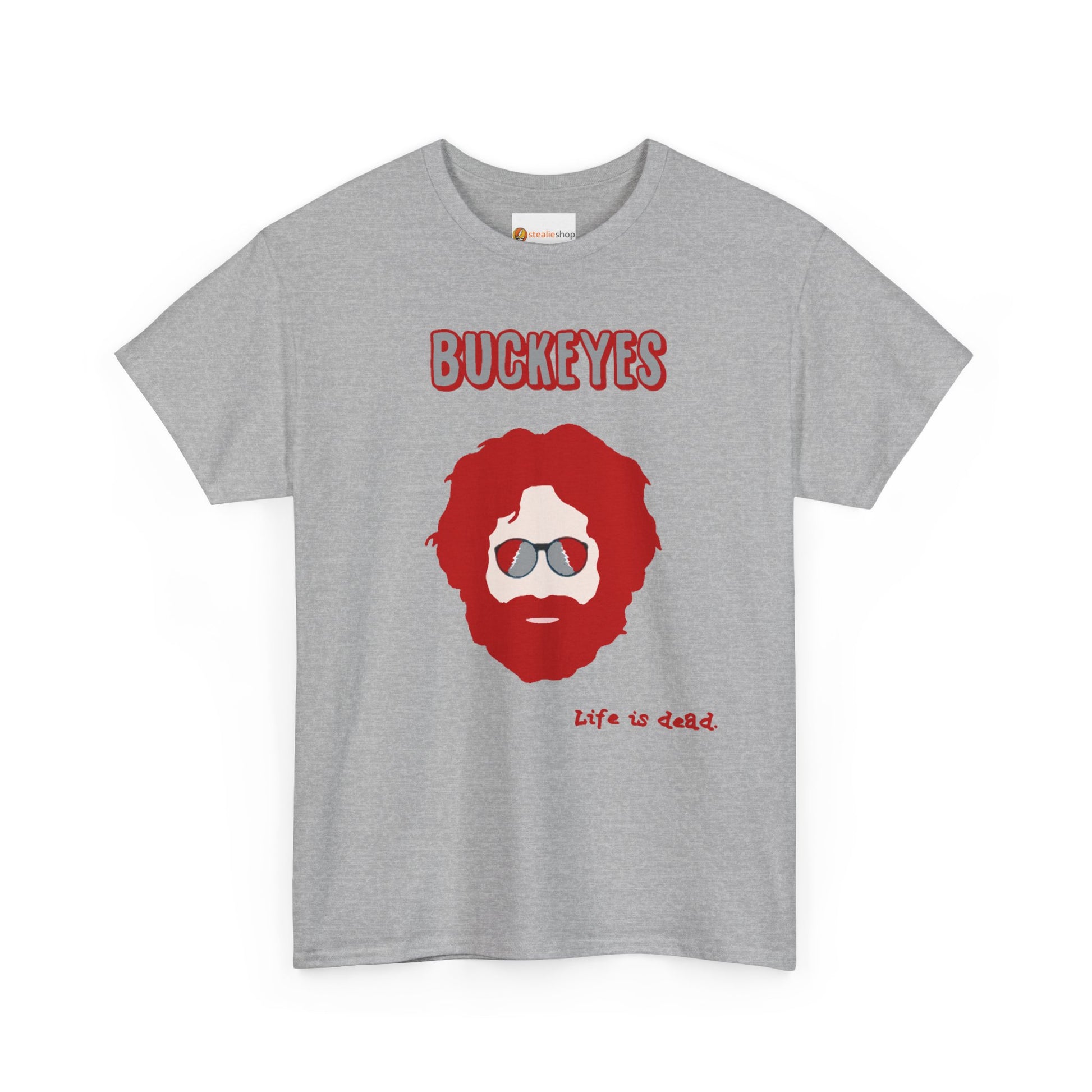 Uniting School Spirit and Musical Legacy: Celebrate the timeless harmony of The Dead and The Ohio State University Buckeyes with this exclusive t-shirt!