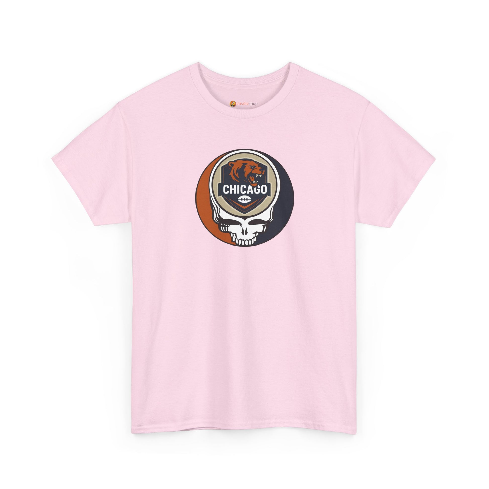 Celebrate the Fusion of Football Legacy and Musical Icon: Embrace the harmonious blend of the Chicago Bears and The Dead with this exclusive t-shirt! The legendary "Steal Your Face" artwork is reimagined in Bears colors, merging team pride with the iconic The Dead symbol.
