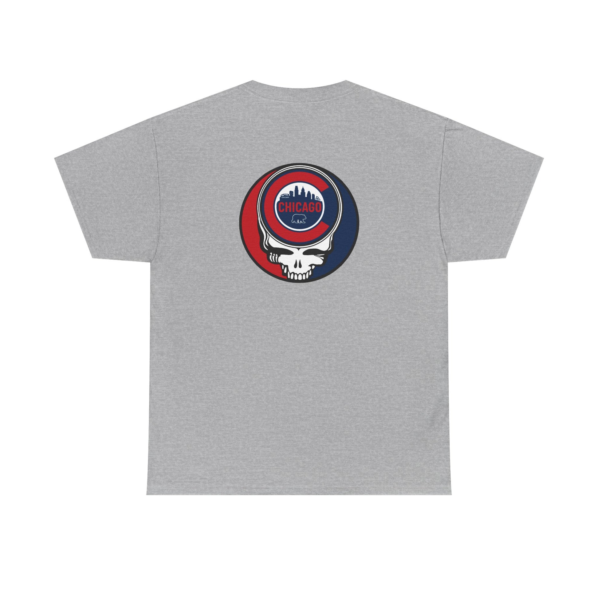 Celebrate the Fusion of Baseball Legacy and Musical Icon: Embrace the harmonious blend of the Chicago Cubs and Grateful Dead with this exclusive t-shirt! The legendary "Steal Your Face" artwork is reimagined in Cubs colors, merging team pride with the iconic Grateful Dead symbol.