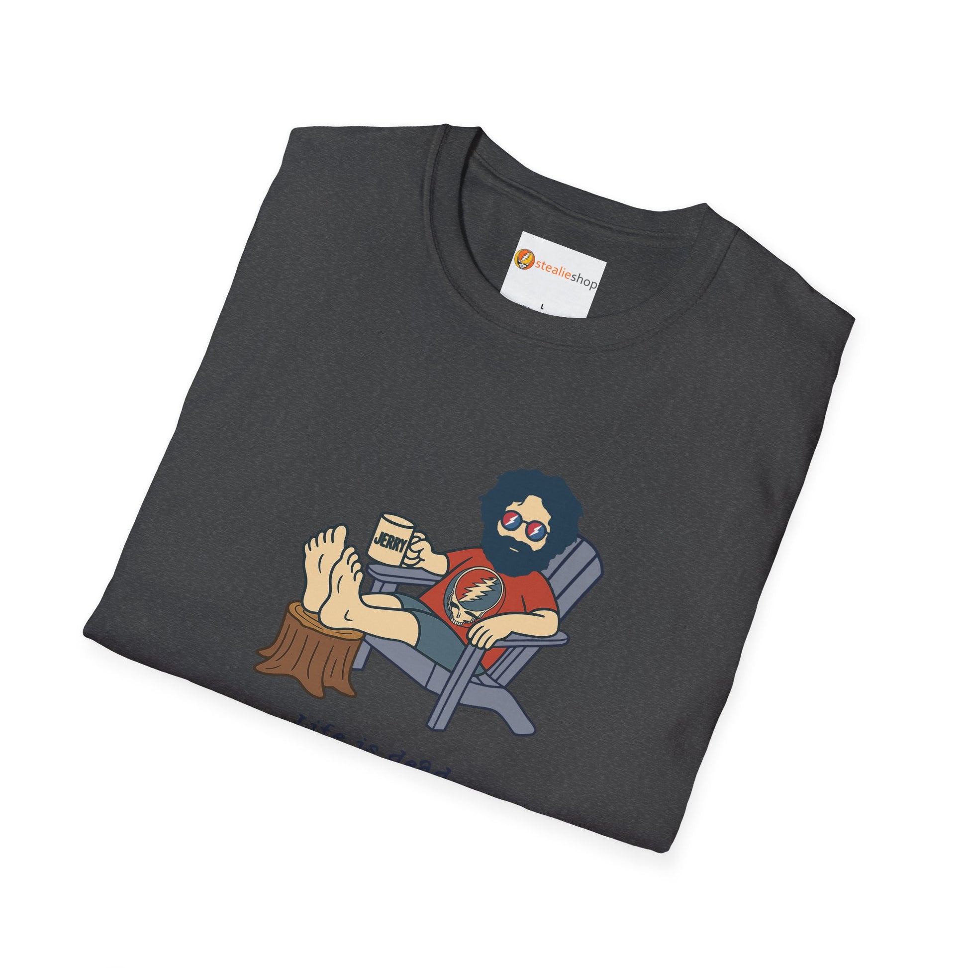 - **Design**: Features an iconic image of Jerry Garcia relaxing in his Adirondack chair, capturing the essence of laid-back Deadhead lifestyle.