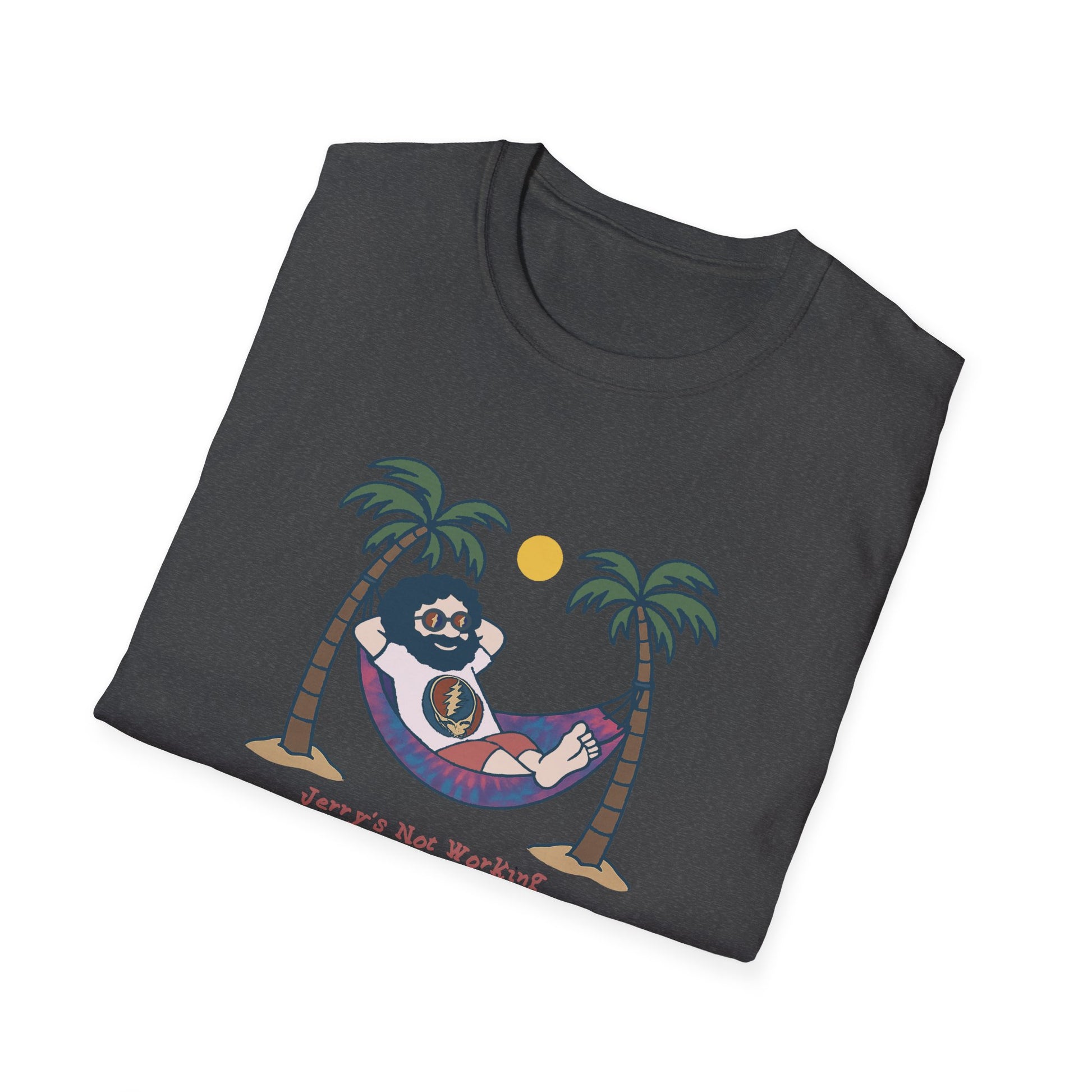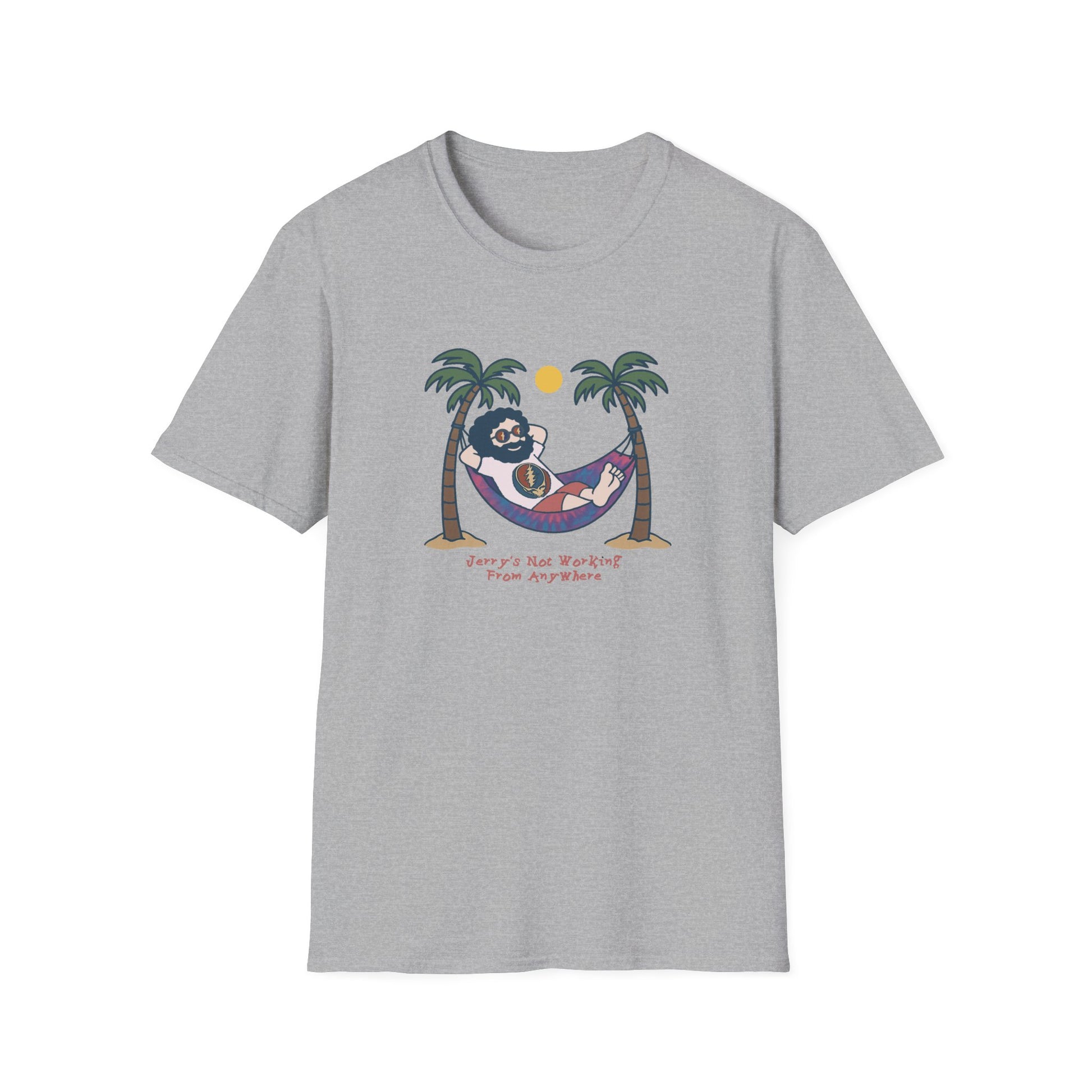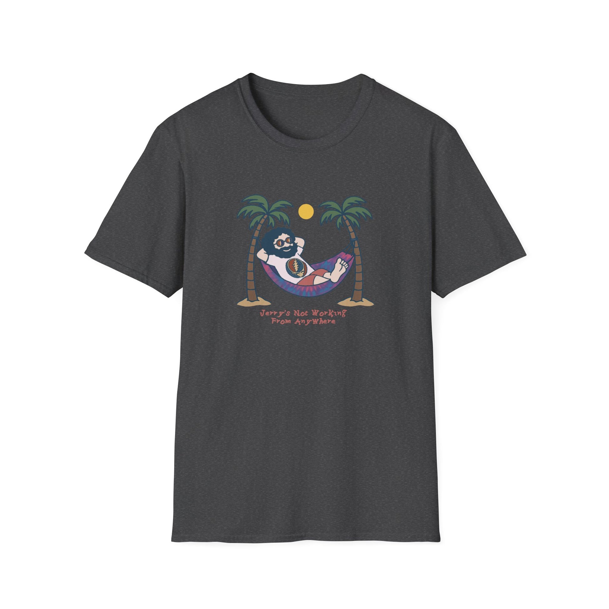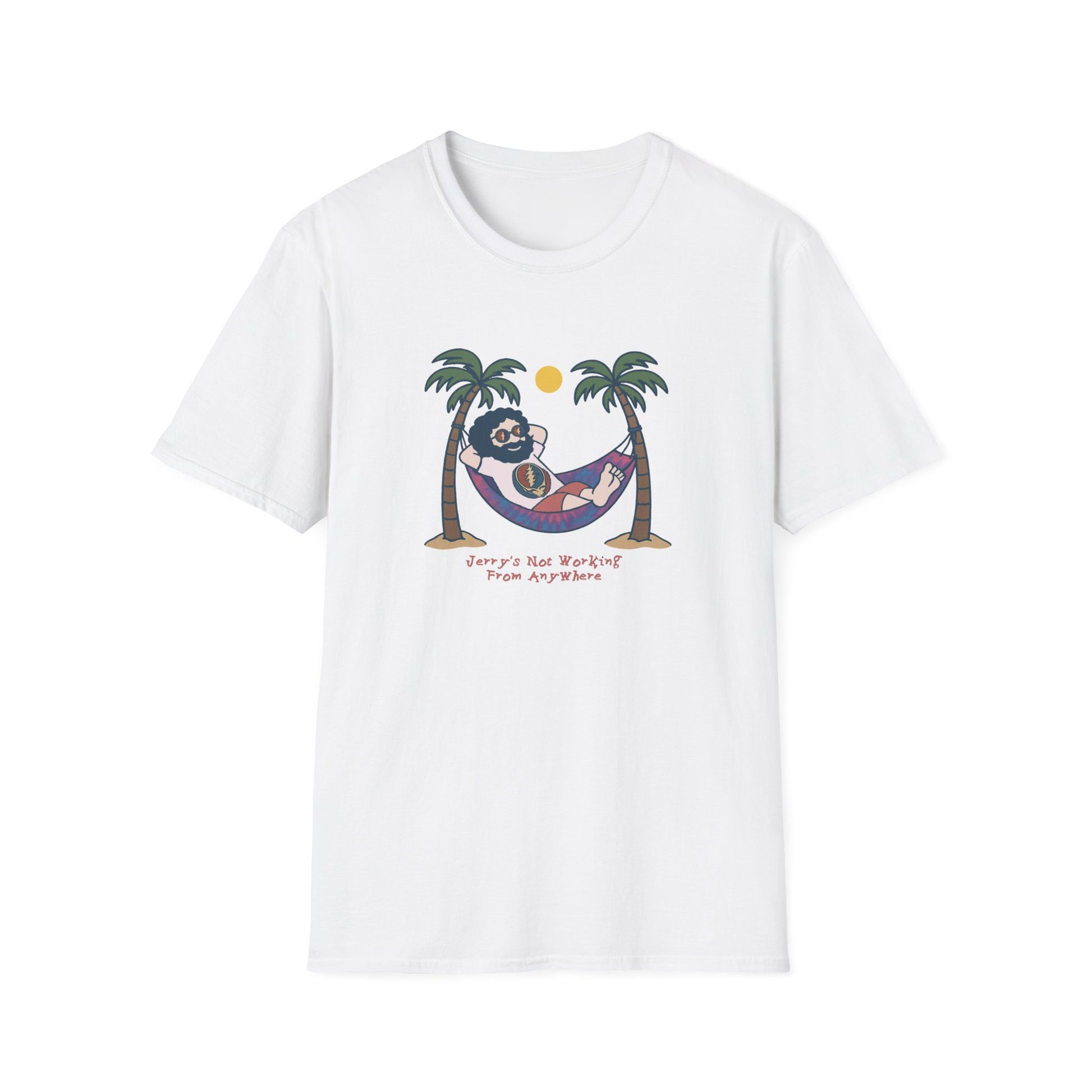 Embrace the carefree spirit of Jerry with the Life is Dead T-Shirt: Not Working From Anywhere. It's more than just a tee; it’s a celebration of taking it easy and enjoying life to the fullest. Whether you're at a concert, lounging at home, or exploring the great outdoors, this shirt is a must-have for any true Deadhead. Get yours now and join Jerry in the ultimate relaxation mode!
