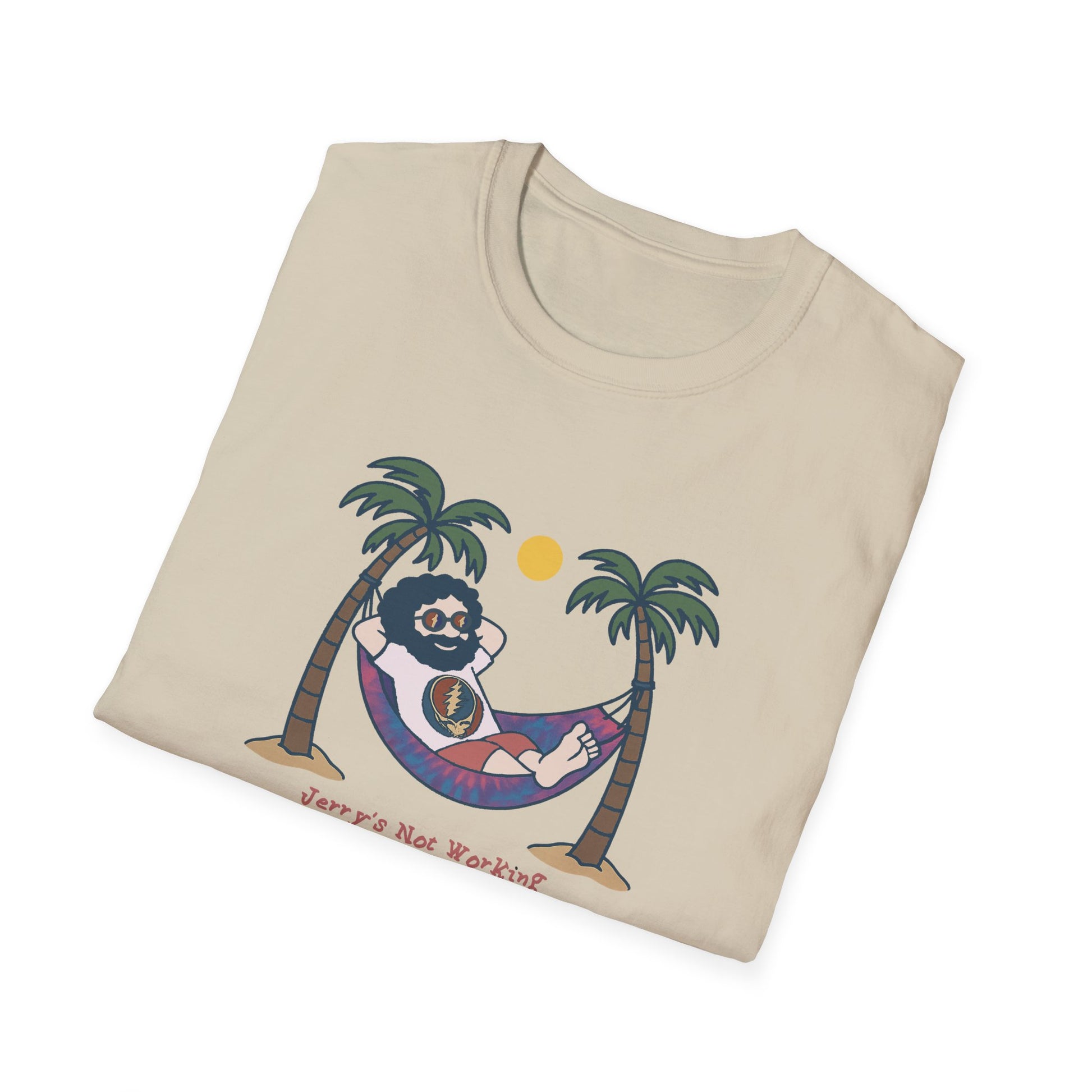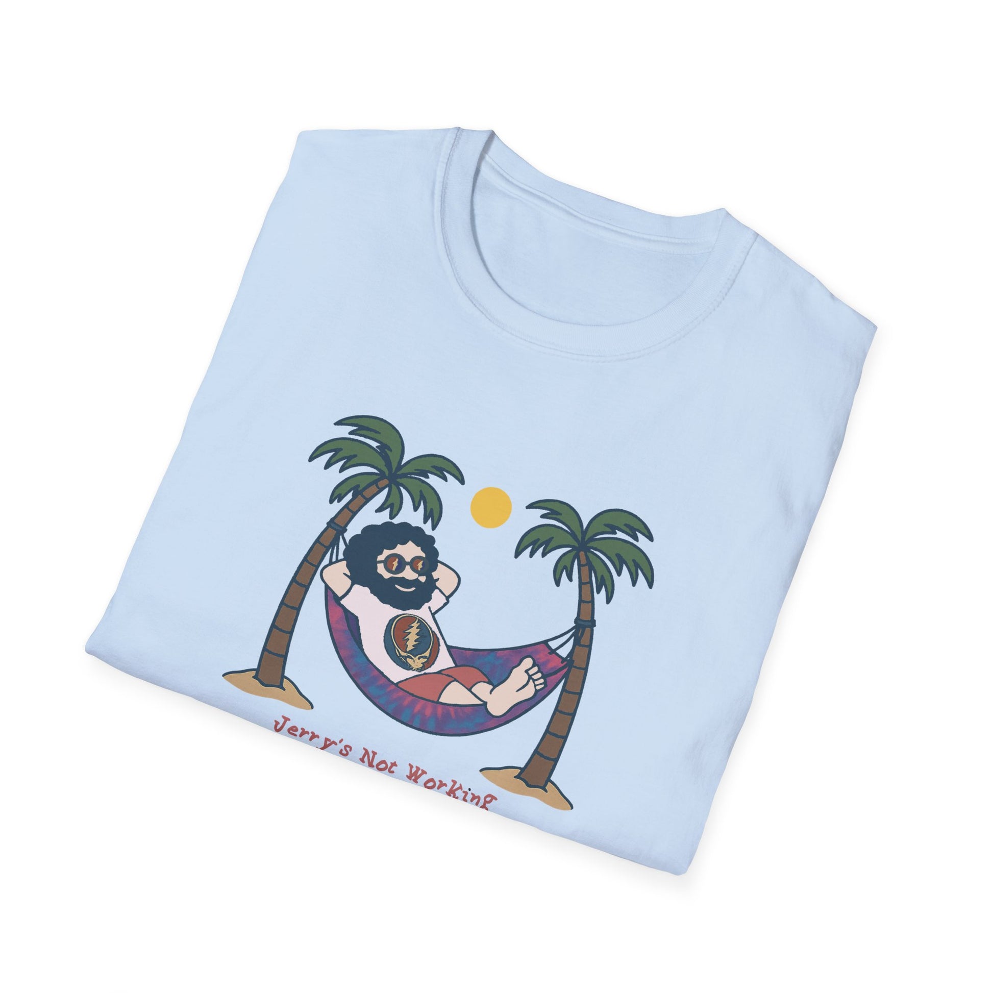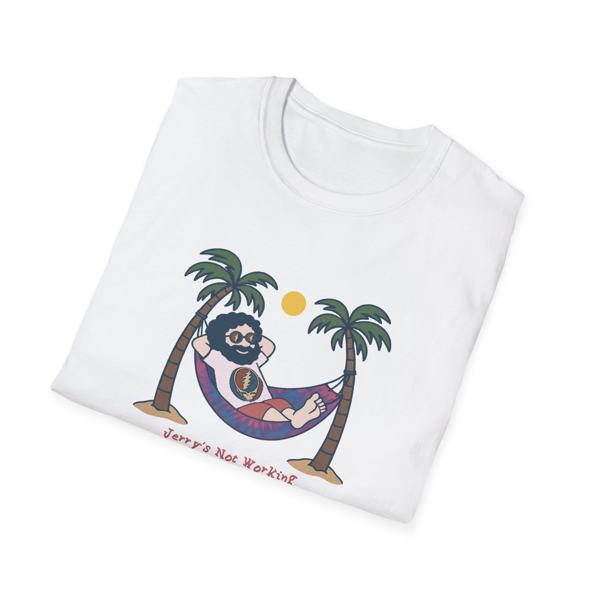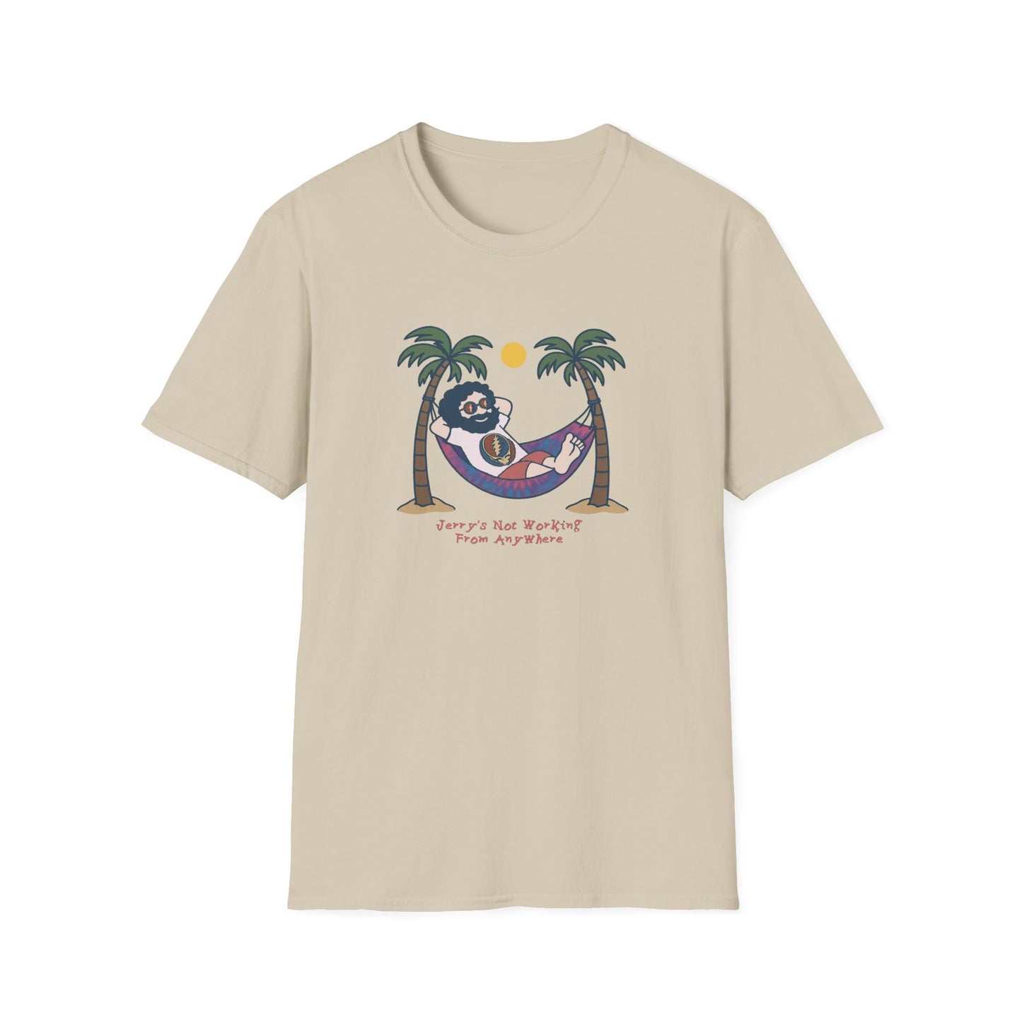 Embrace the carefree spirit of Jerry with the Life is Dead T-Shirt: Not Working From Anywhere. It's more than just a tee; it’s a celebration of taking it easy and enjoying life to the fullest. Whether you're at a concert, lounging at home, or exploring the great outdoors, this shirt is a must-have for any true Deadhead. Get yours now and join Jerry in the ultimate relaxation mode!