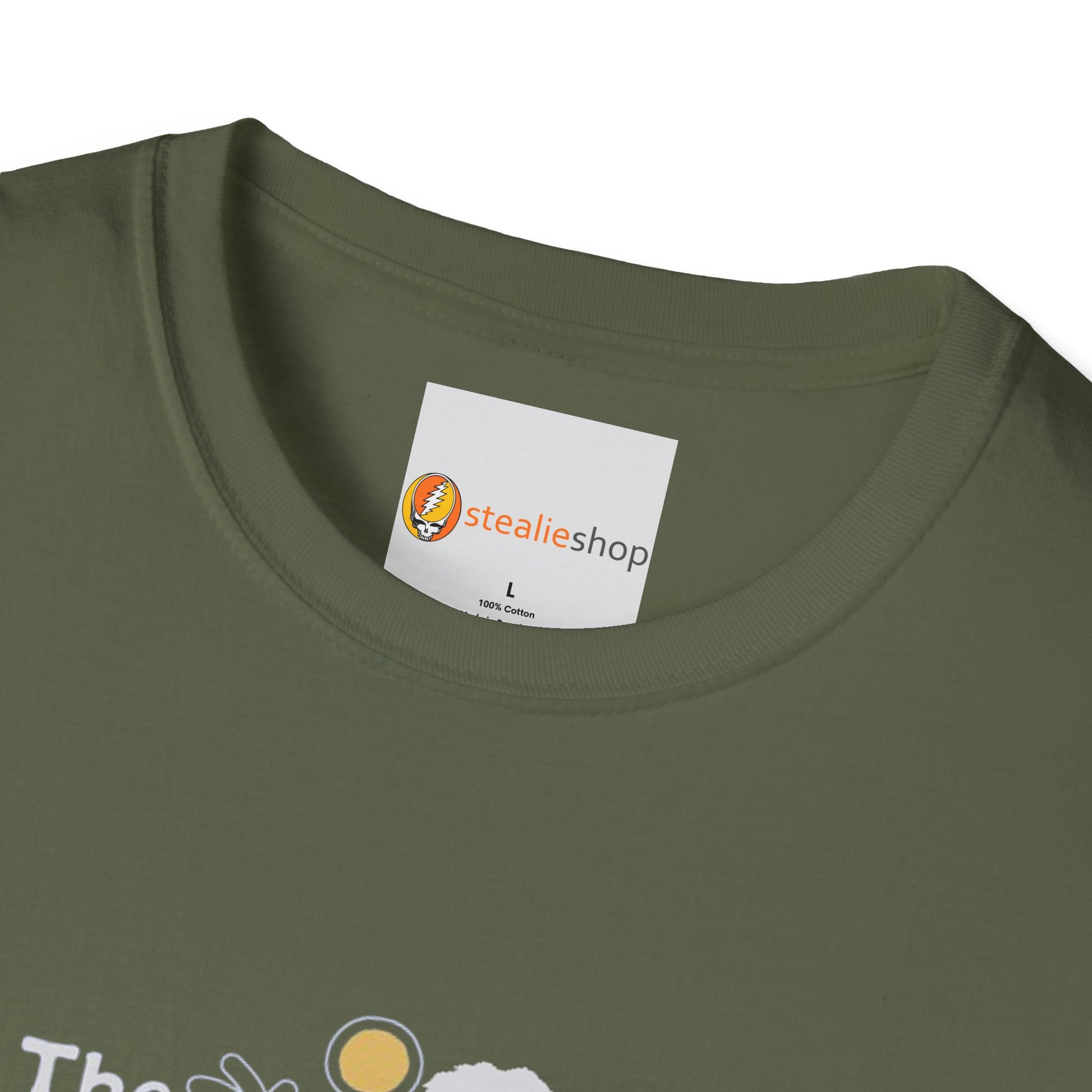 This unisex soft-style t-shirt is crafted from super soft materials, making it perfect for Deadheads who love fashion, adventure, and a good time. Solid colors are made with 100% ring-spun cotton, while heather shades offer a blend of cotton and polyester, providing a lightweight and breathable feel. The classic fit and crew neckline ensure versatility, whether you're heading out for a stroll or relaxing with friends.