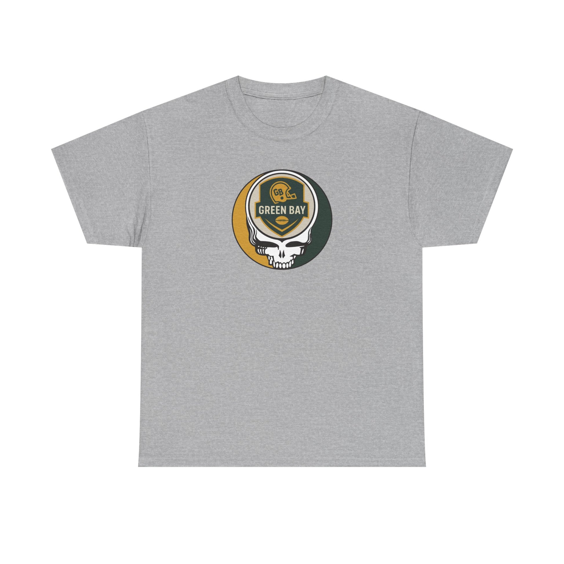Celebrate the Fusion of Football Legacy and Musical Icon: Embrace the harmonious blend of the Green Bay Packers and Grateful Dead with this exclusive t-shirt! The legendary "Steal Your Face" artwork is reimagined in Packers colors, merging team pride with the iconic Grateful Dead symbol.