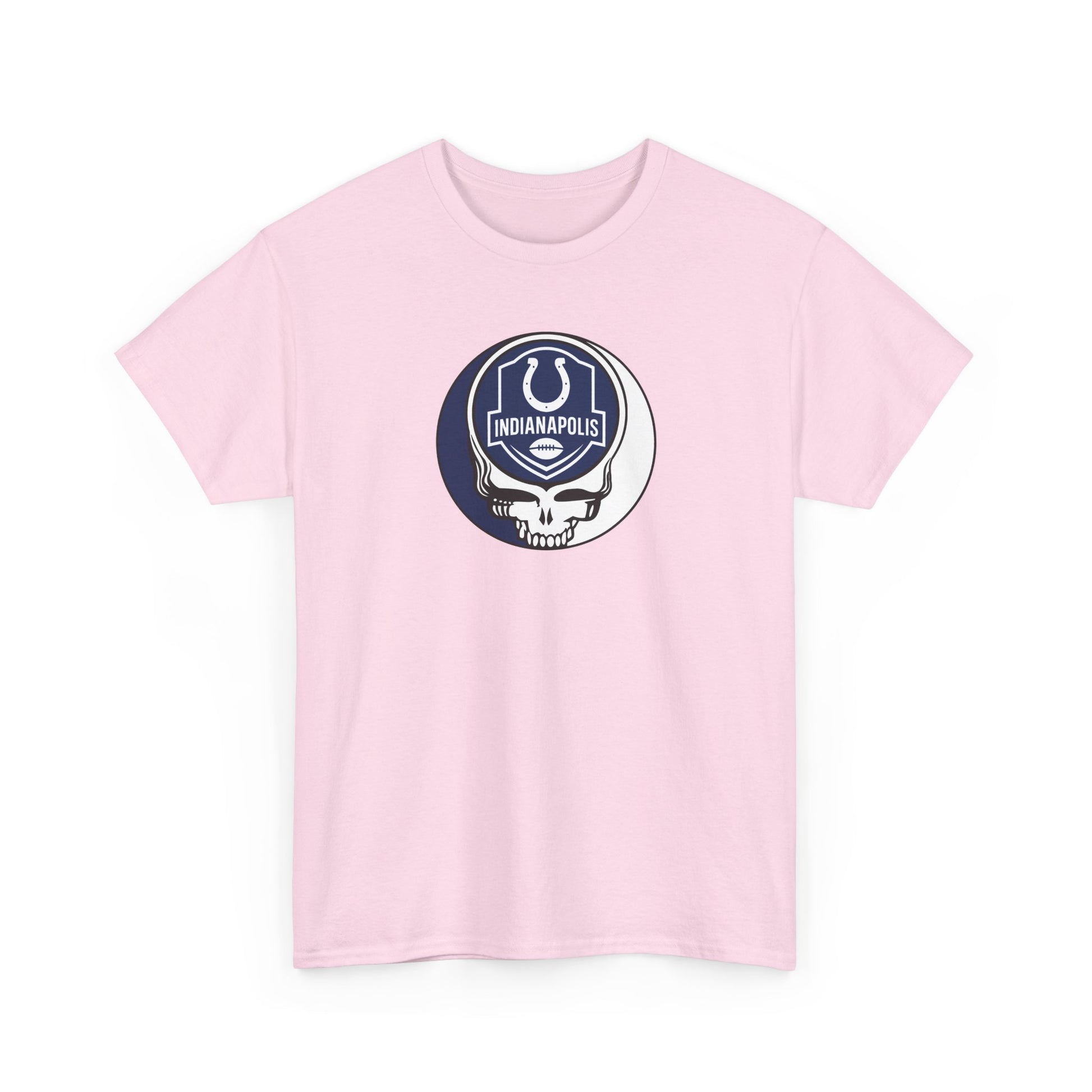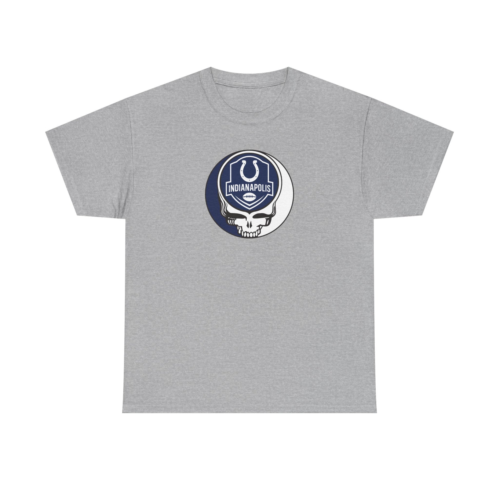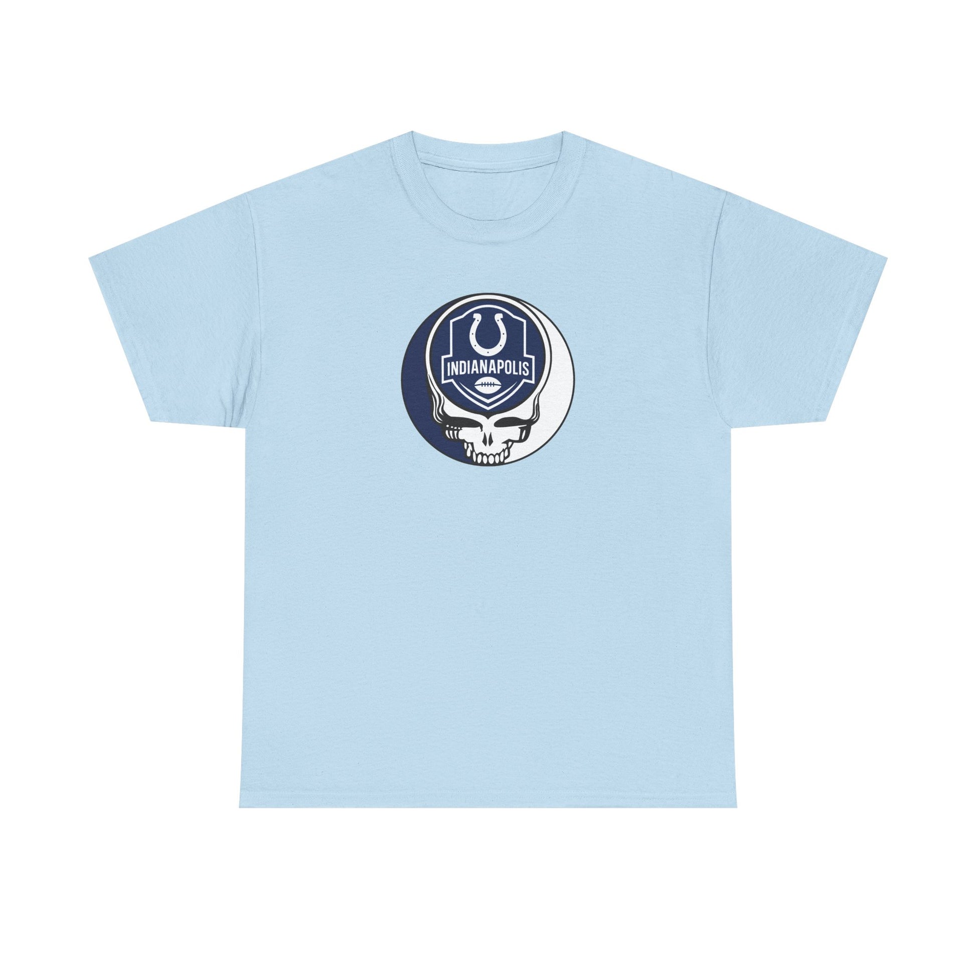 Celebrate the Fusion of Football Legacy and Musical Icon: Embrace the harmonious blend of the Indianapolis Colts and Grateful Dead with this exclusive t-shirt! The legendary "Steal Your Face" artwork is reimagined in Colts colors, merging team pride with the iconic Grateful Dead symbol.