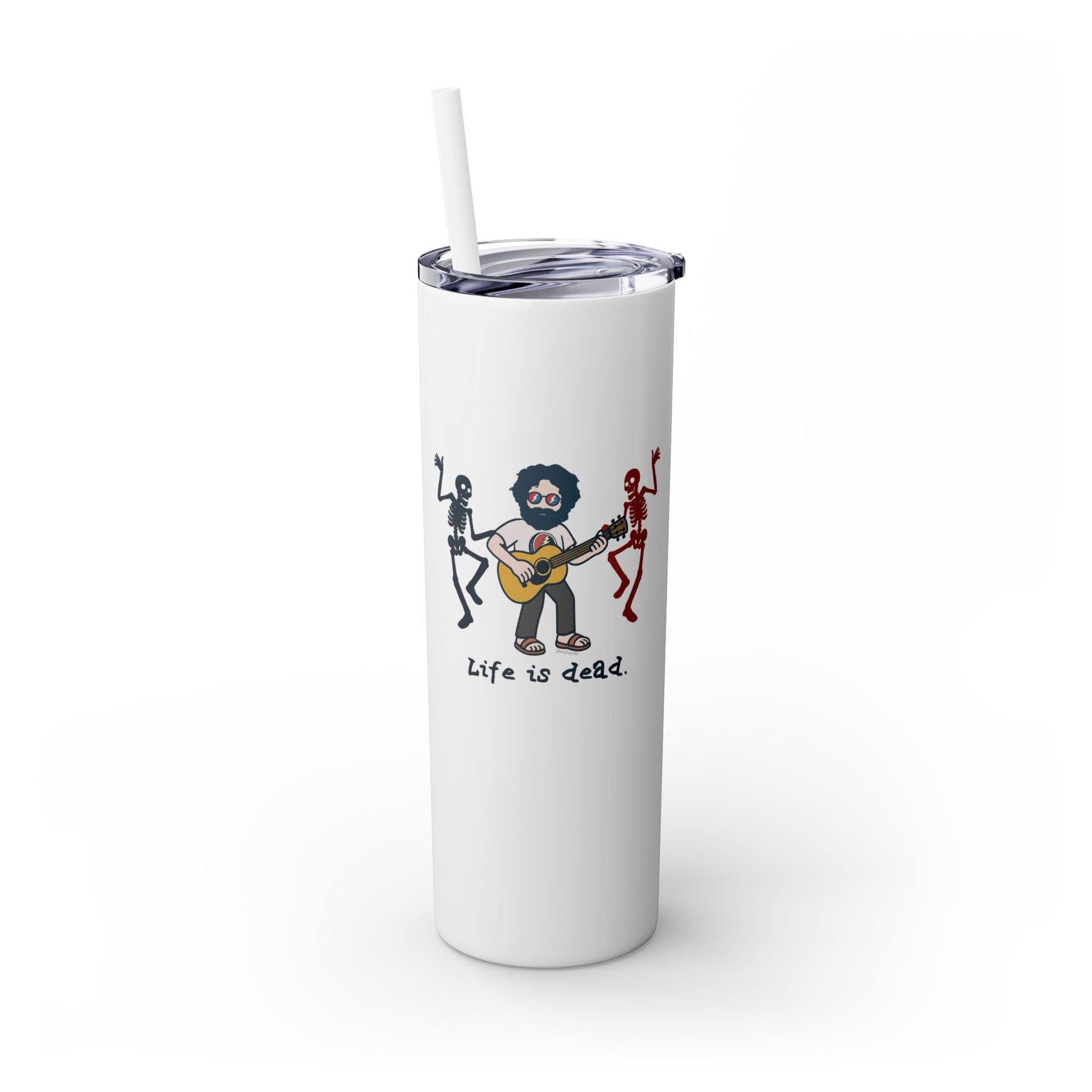 Jerry and His Skeleton Friends - Life is dead. Skinny Tumbler with Straw, 20oz