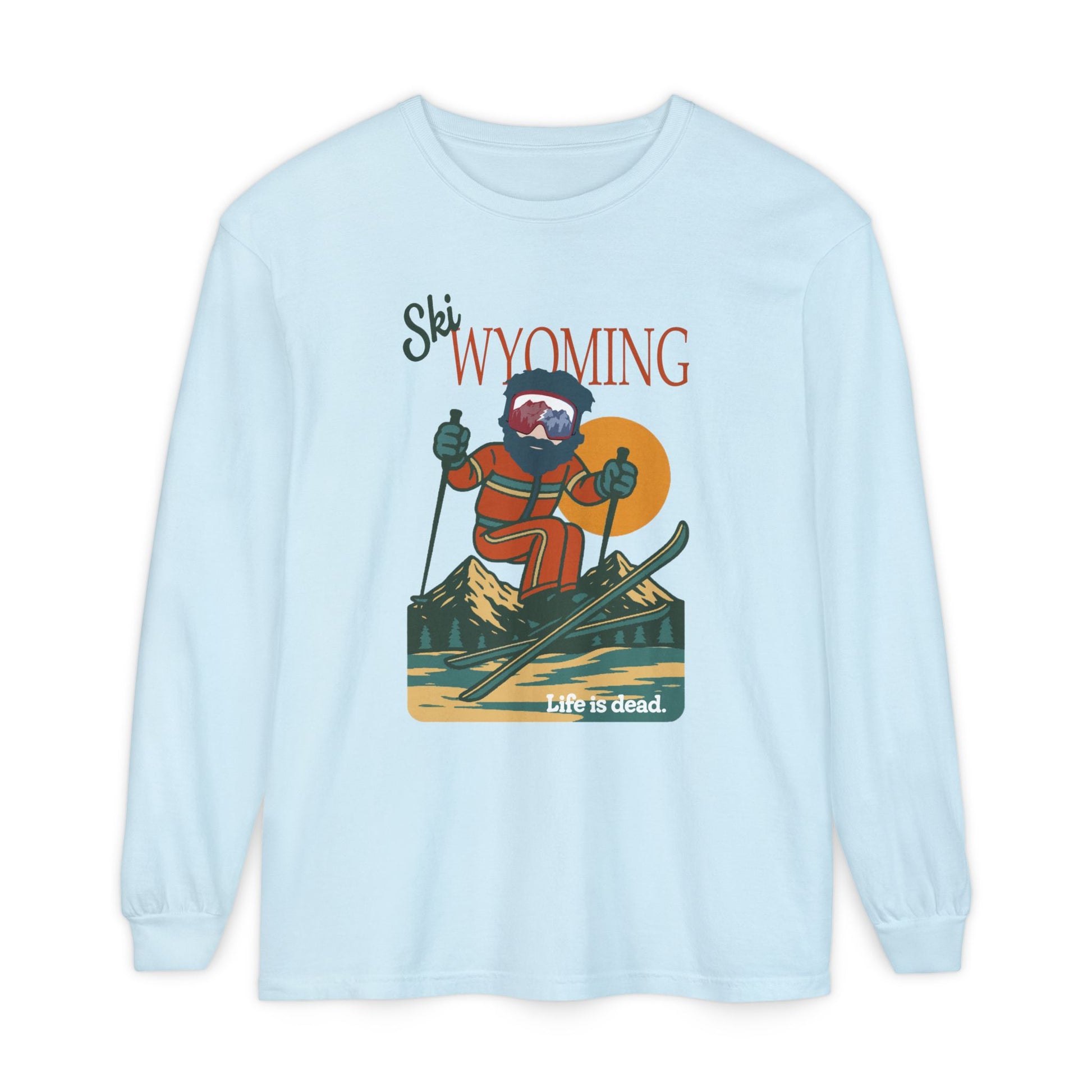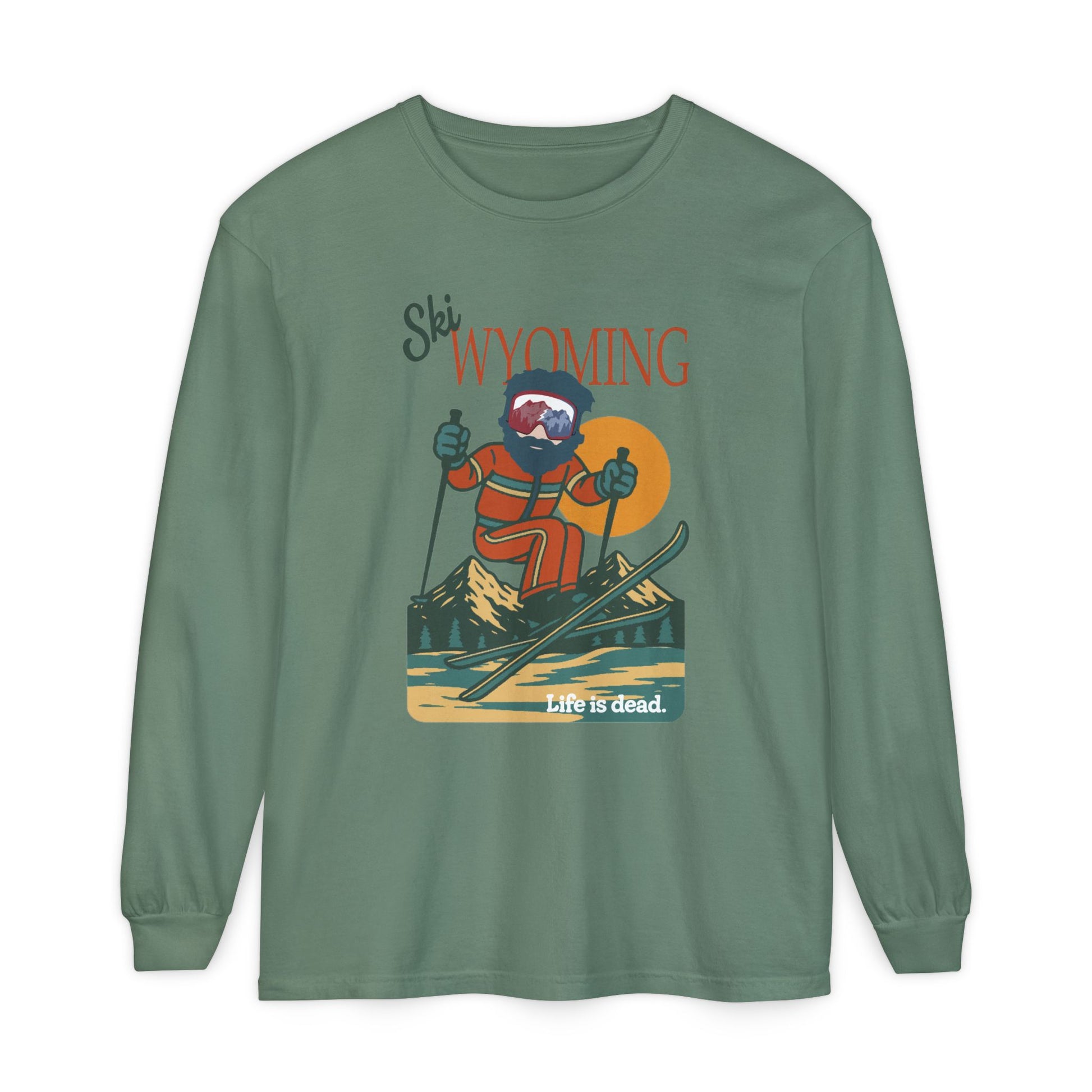 Ski Wyoming - Life is dead. Mountain Collection Garment-Dyed Long Sleeve T-Shirt