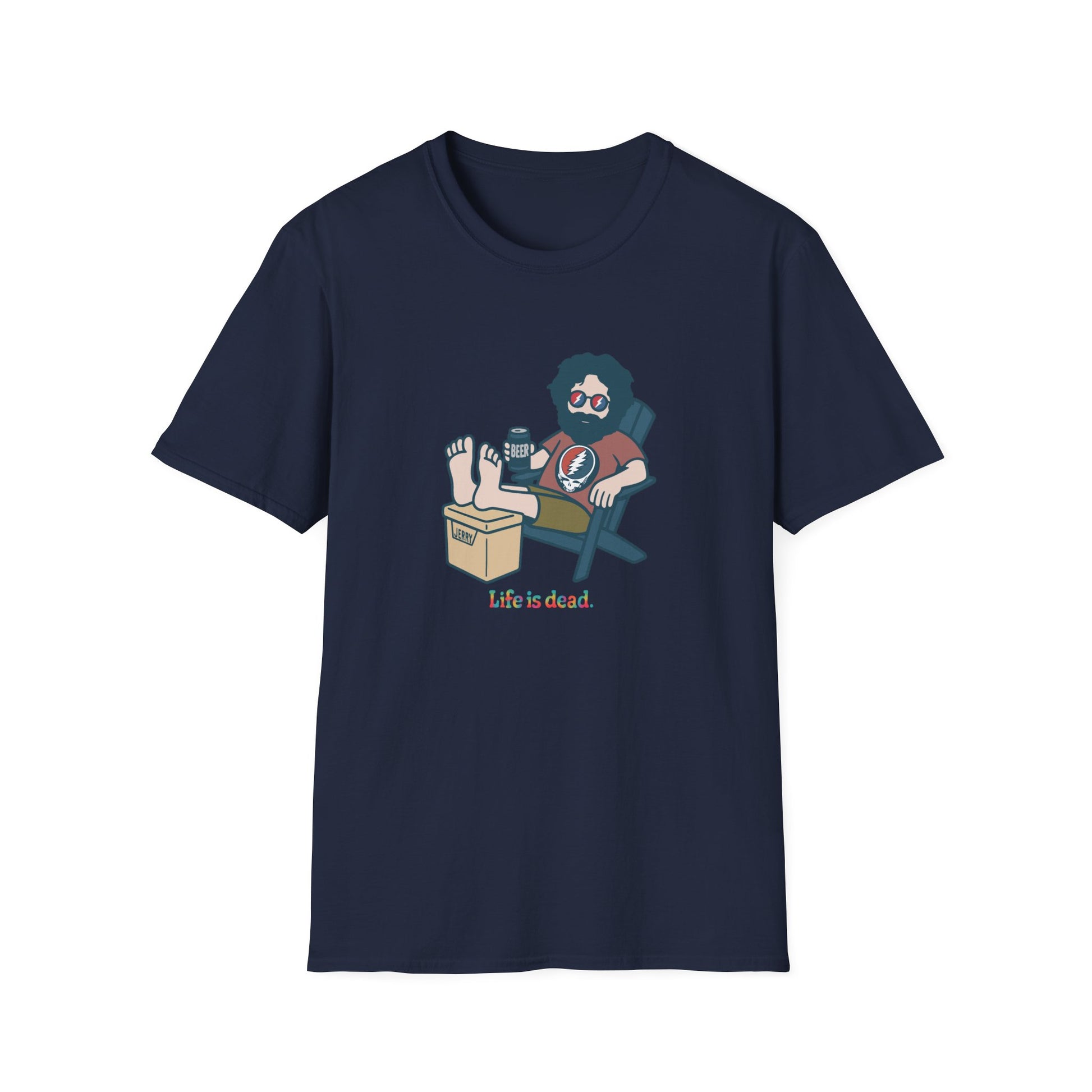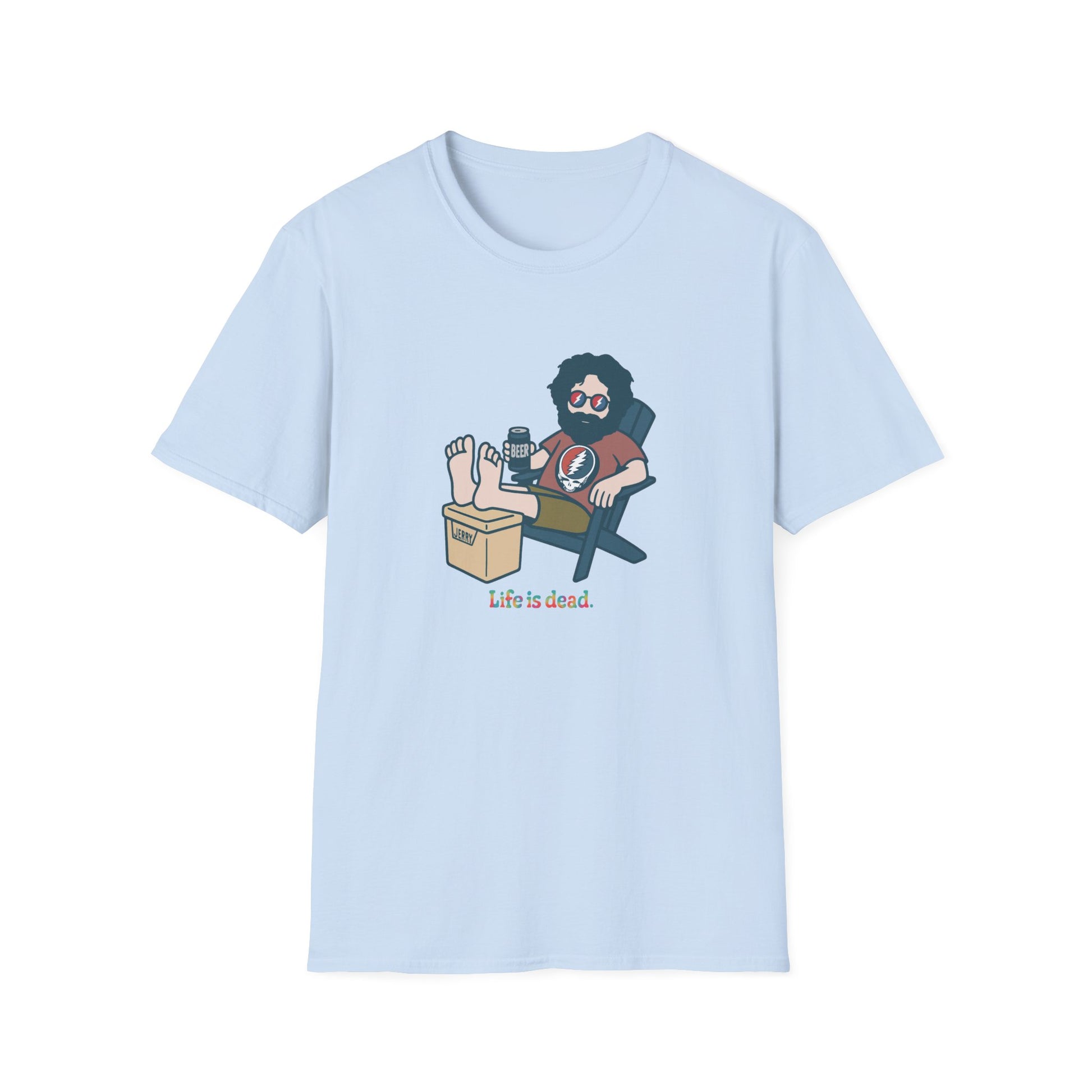 Embrace the spirit of relaxation with the Life is Dead T-Shirt: "Stay Cool, Jerry". This shirt isn't just a piece of clothing; it's a statement of chill and joy, perfect for any Deadhead who knows how to enjoy the simple pleasures of life. Whether you're lounging by the pool, at a concert, or just hanging out with friends, this tee is your go-to for ultimate comfort and style. Grab yours now and stay cool with Jerry all year long!