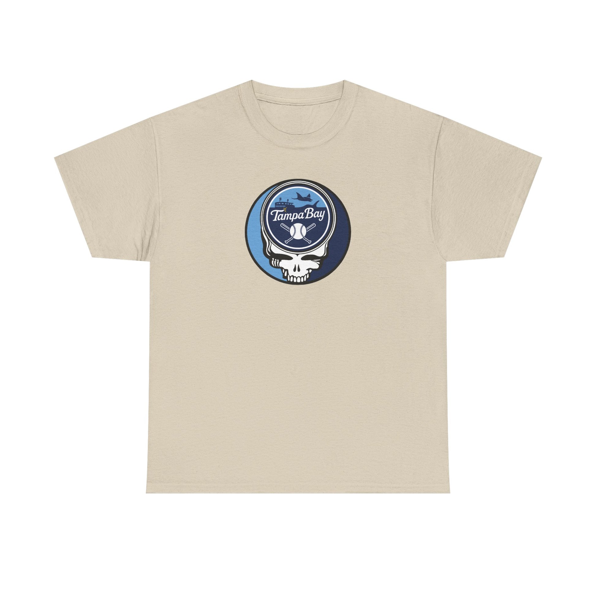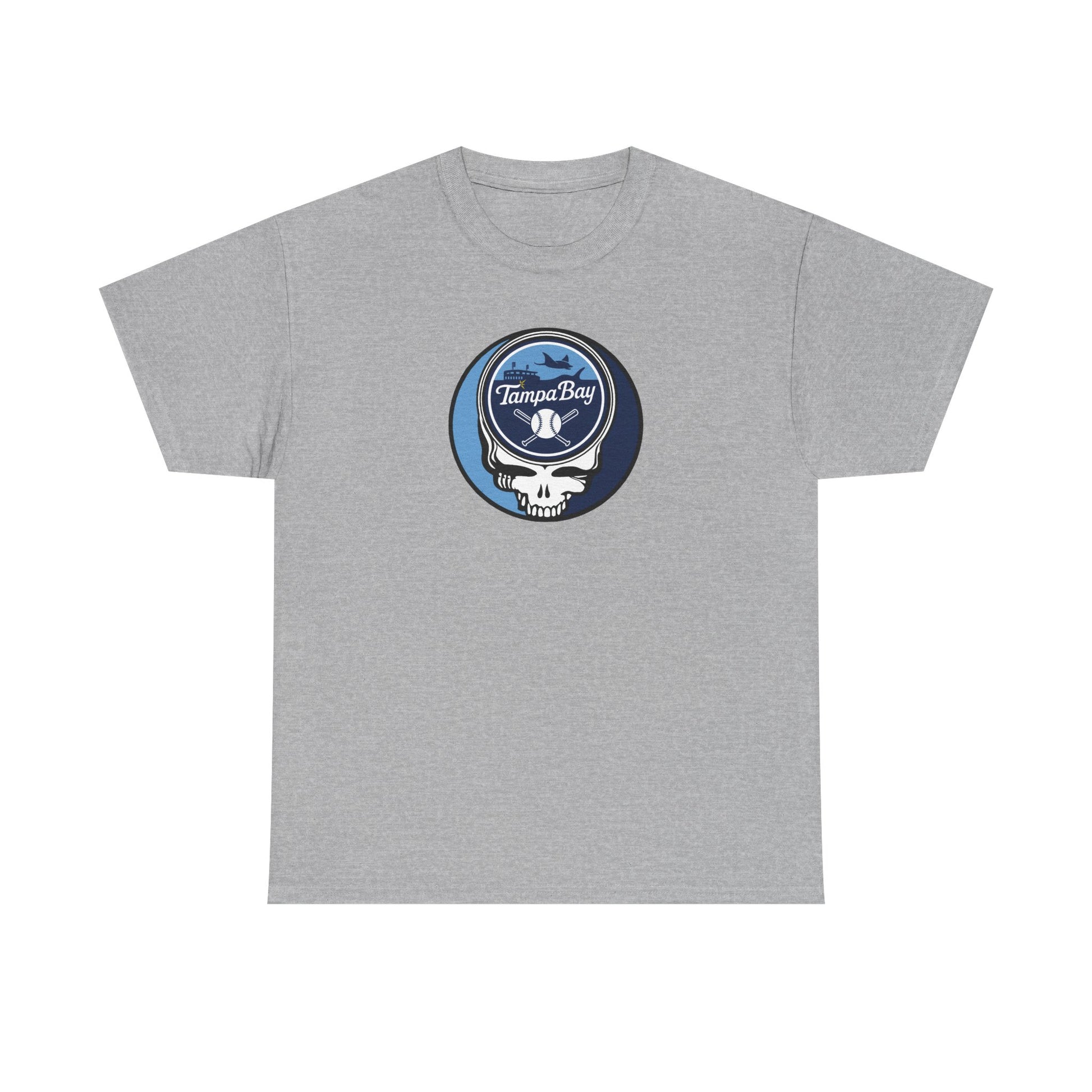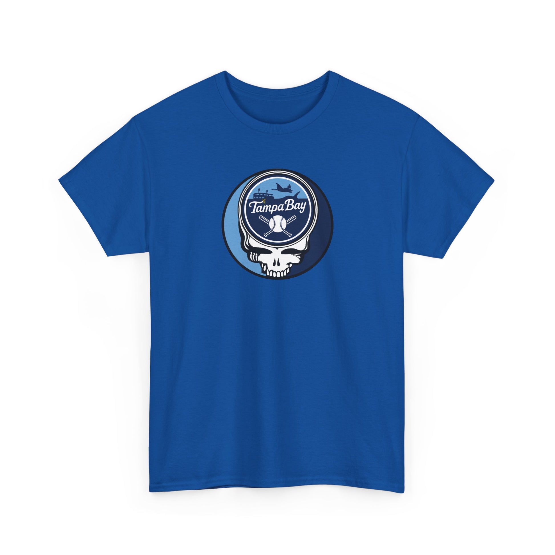 Celebrate the Fusion of Baseball Legacy and Musical Icon: Embrace the harmonious blend of the Tampa Bay Rays and Grateful Dead with this exclusive t-shirt! The legendary "Steal Your Face" artwork is reimagined in Rays colors, merging team pride with the iconic Grateful Dead symbol.