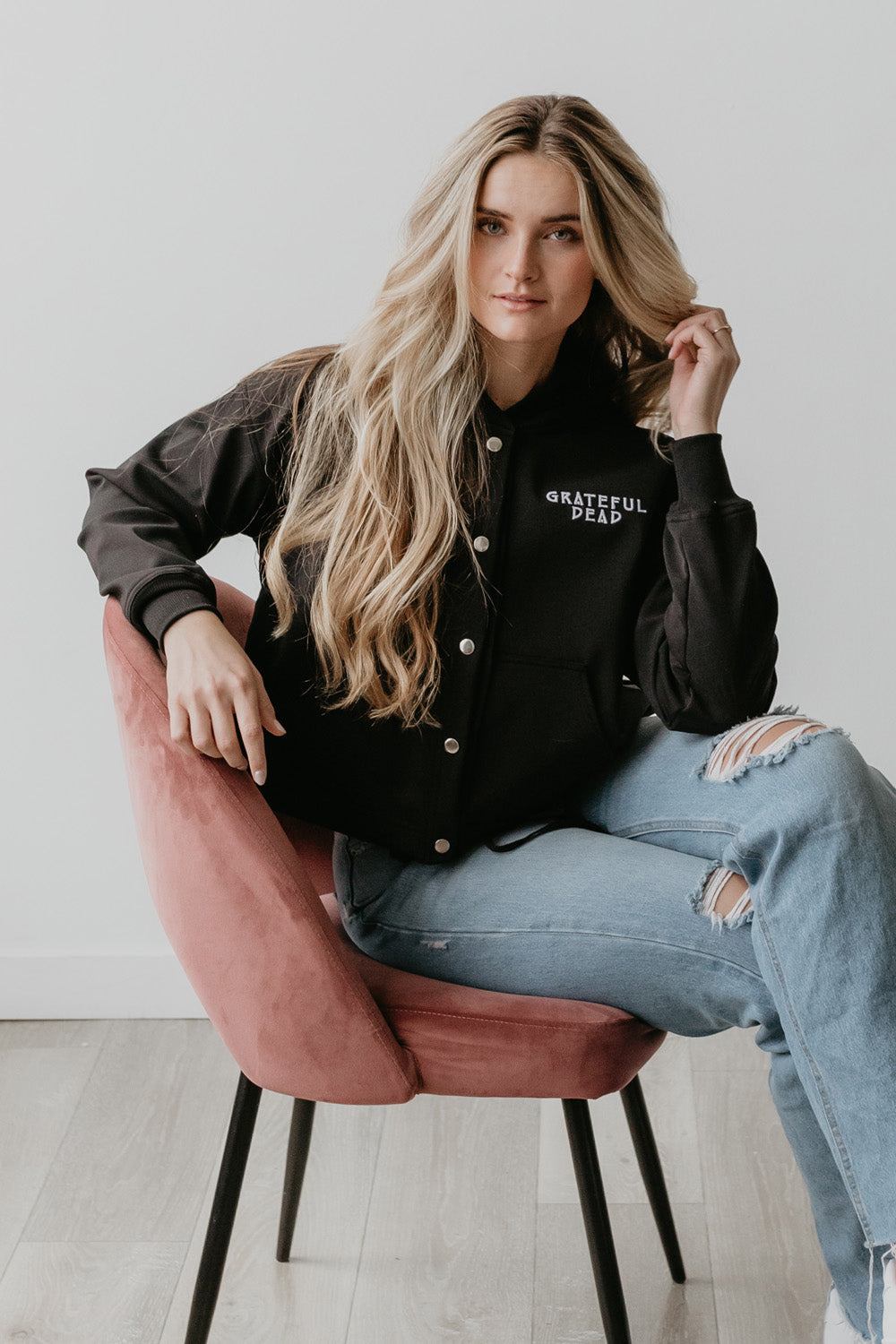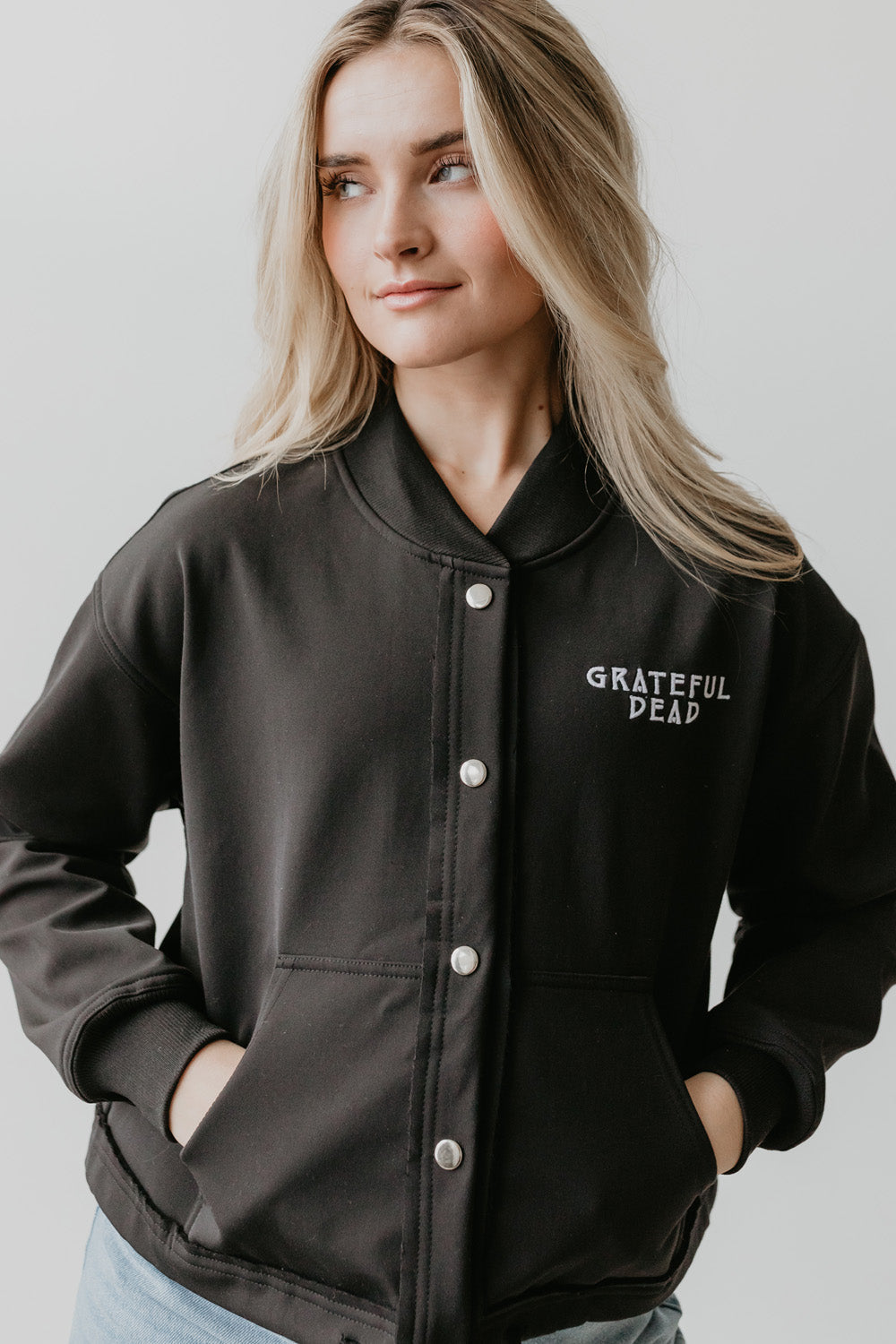 This is the Varsity that you will take everywhere. Relax fit, but very cute look. Comfy and casual but full of details.