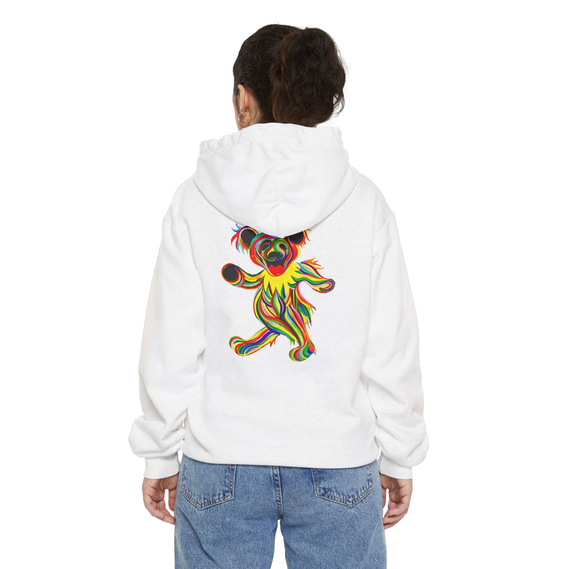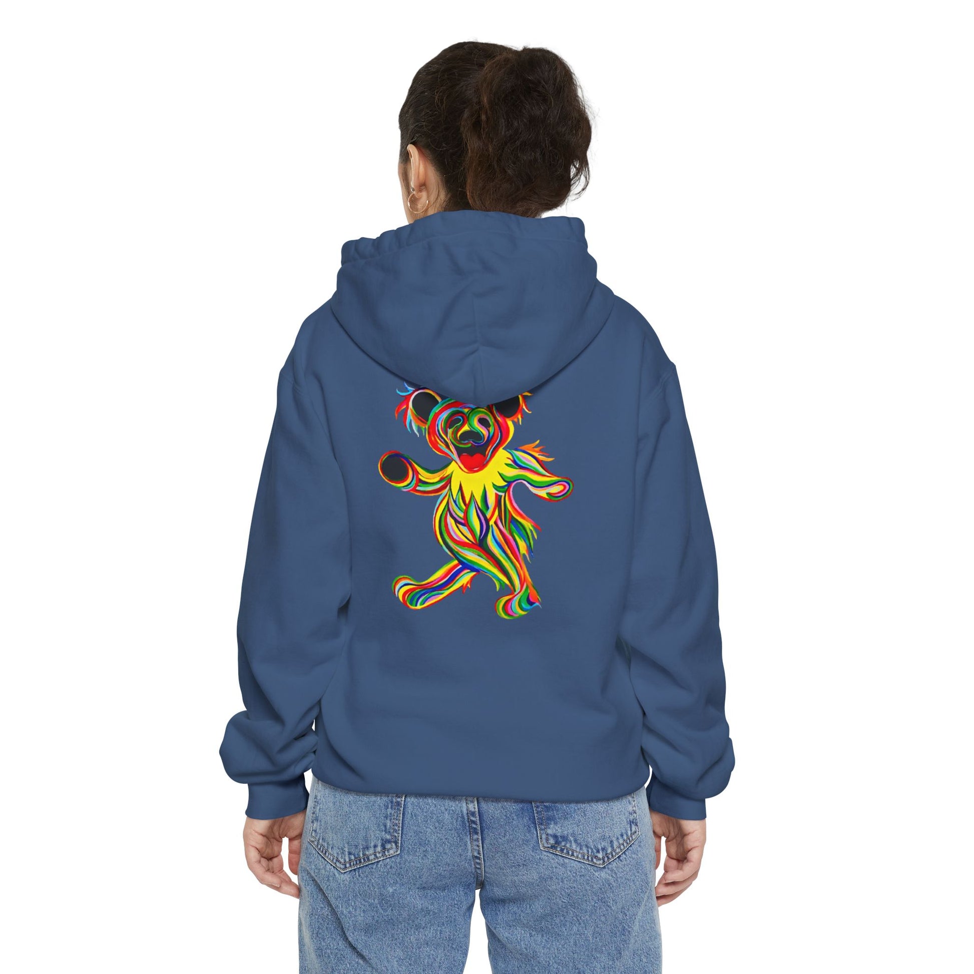 Discover unmatched comfort and style with this Tie-Dye Bear unisex, garment-dye hoodie. Made with 80% ring-spun cotton and 20% polyester, this hoodie delivers incredible comfort for any casual setting. Each hoodie features a 3-end, garment-dyed, ring-spun fleece with a 100% cotton face, while the hood is jersey-lined with a color-matched flat cord. What's more, these hoodies sport a rolled-forward shoulder and a back neck patch.