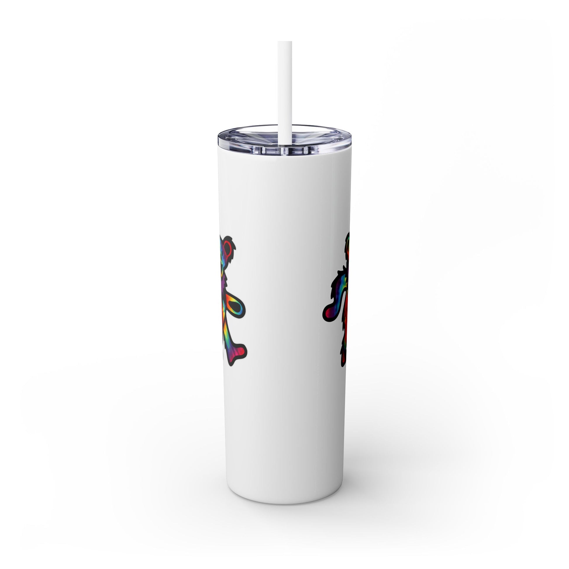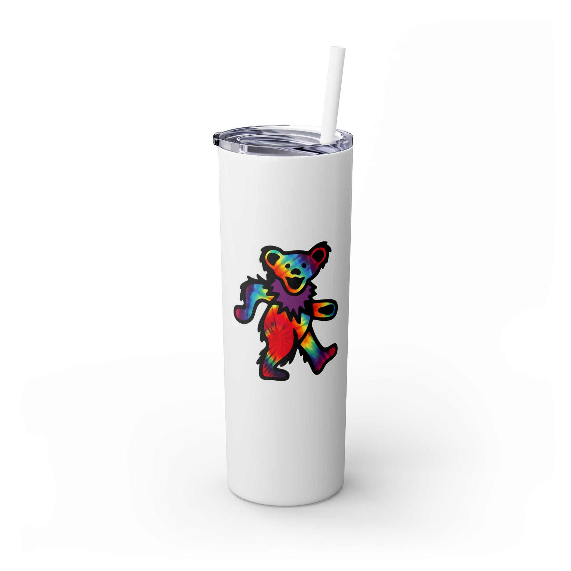 Tie Dye Dancing Bear - Life is dead. Skinny Tumbler with Straw, 20oz