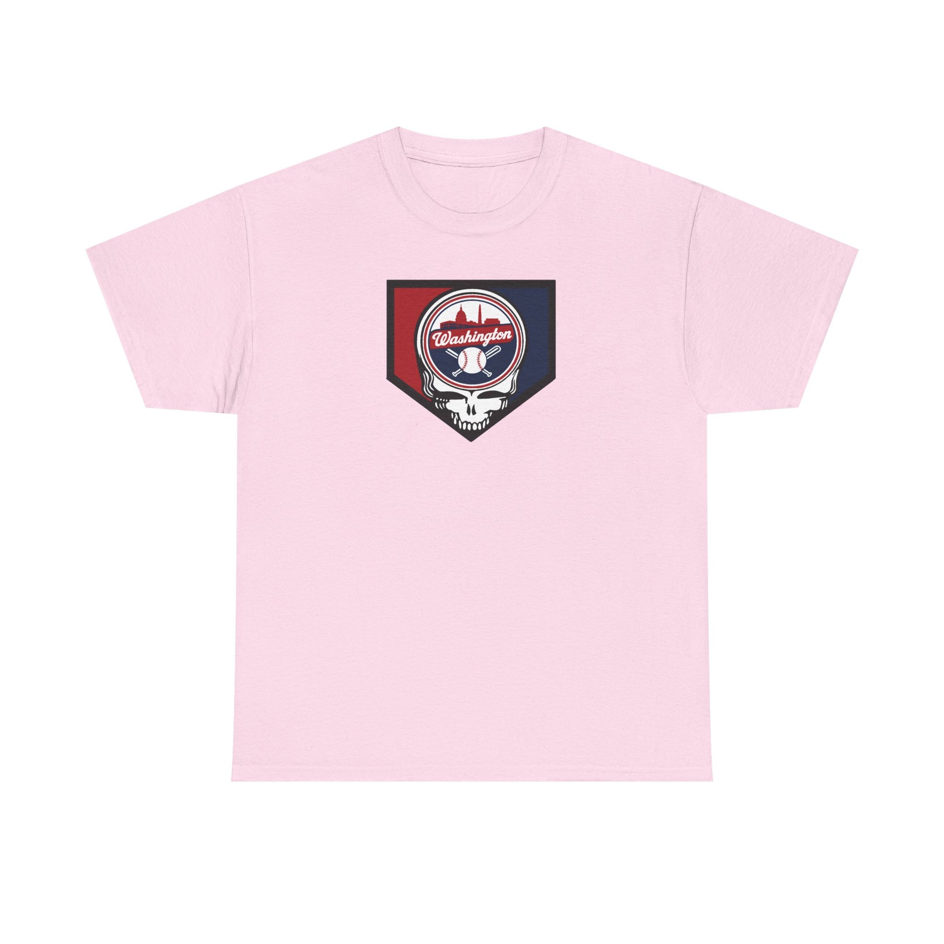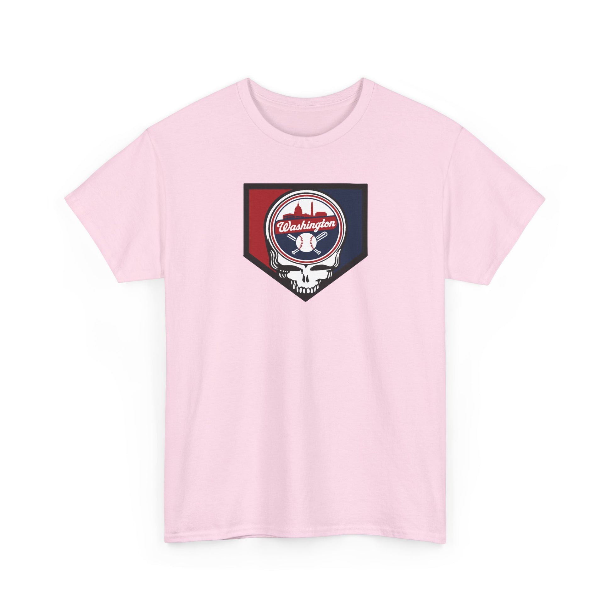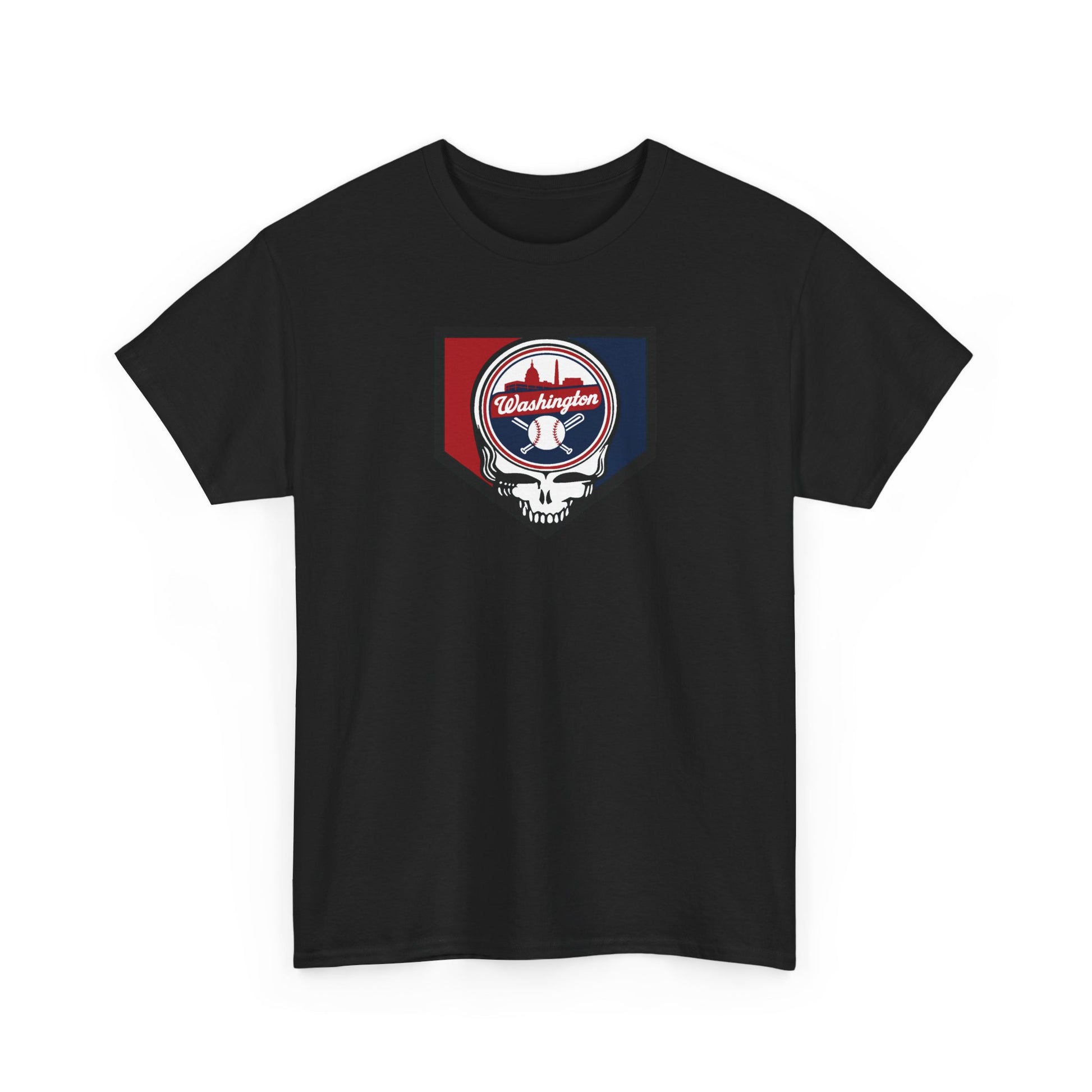 Celebrate the Fusion of Baseball Legacy and Musical Icon: Embrace the harmonious blend of the Washington Nationals and Grateful Dead with this exclusive t-shirt! The legendary "Steal Your Face" artwork is reimagined in the Nats colors, merging team pride with the iconic Grateful Dead symbol.