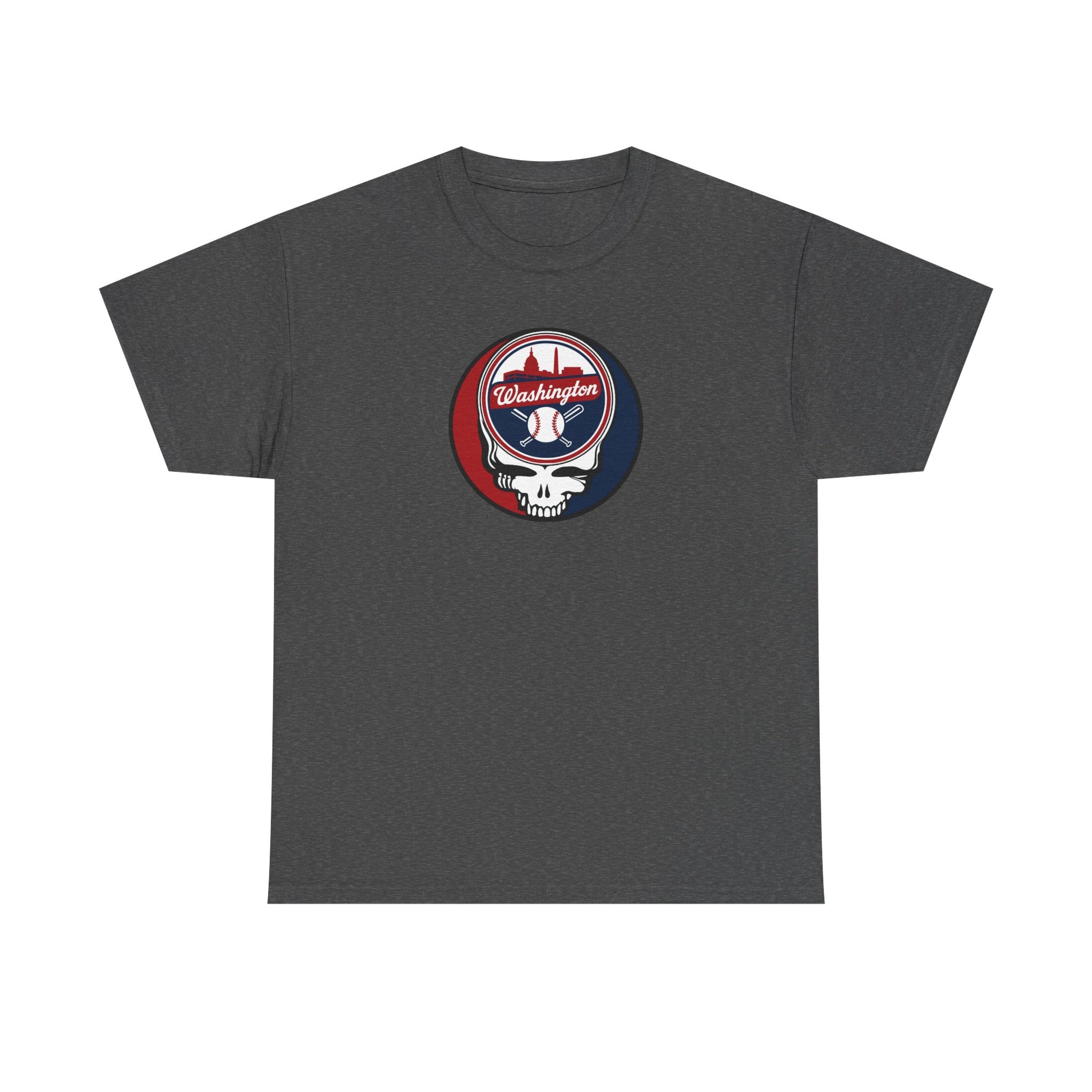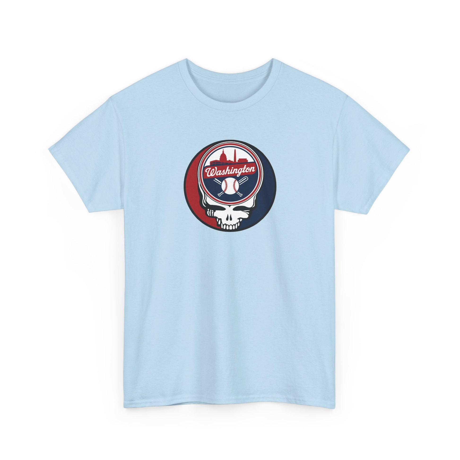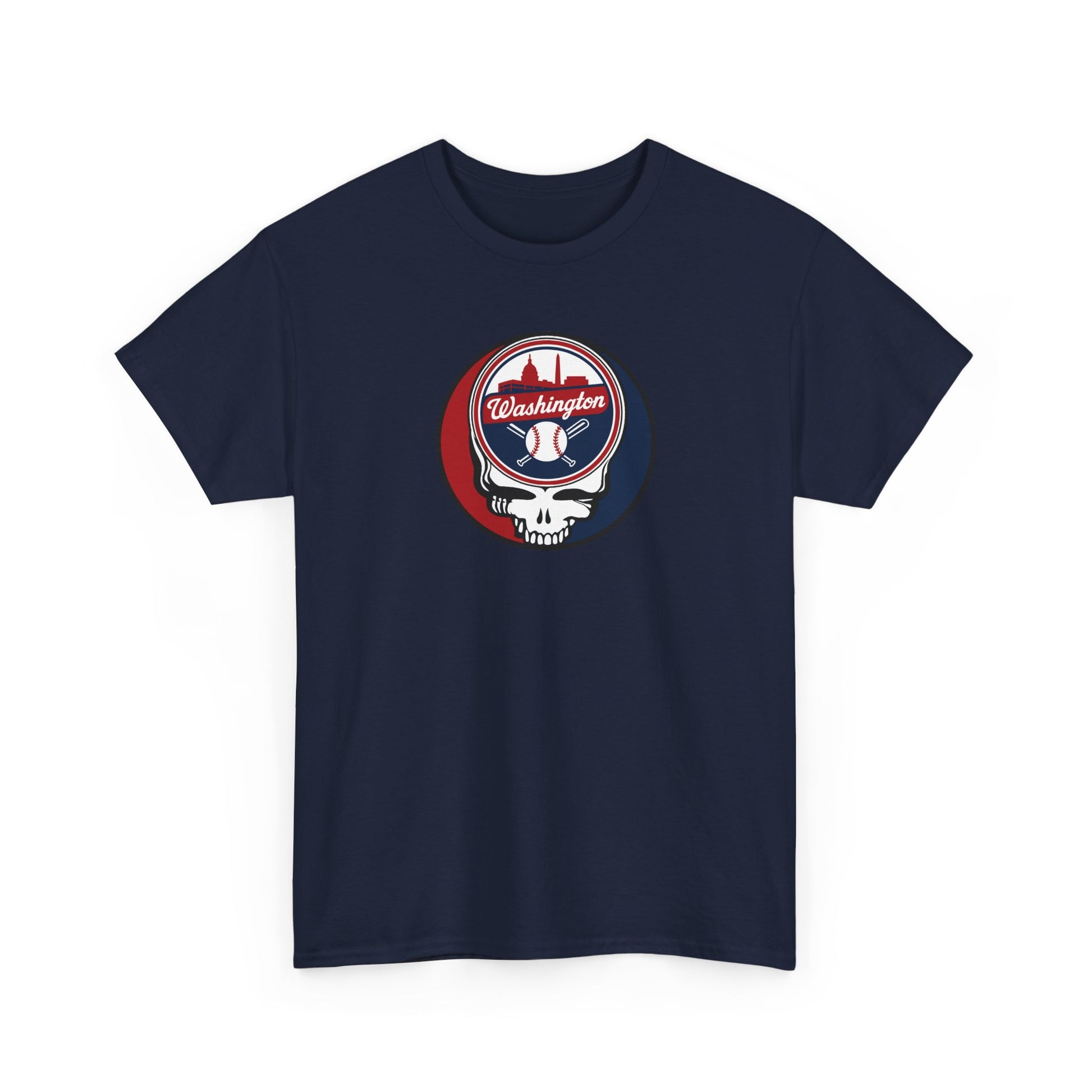 Celebrate the Fusion of Baseball Legacy and Musical Icon: Embrace the harmonious blend of the Washington Nationals and Grateful Dead with this exclusive t-shirt! The legendary "Steal Your Face" artwork is reimagined in the Nats colors, merging team pride with the iconic Grateful Dead symbol.